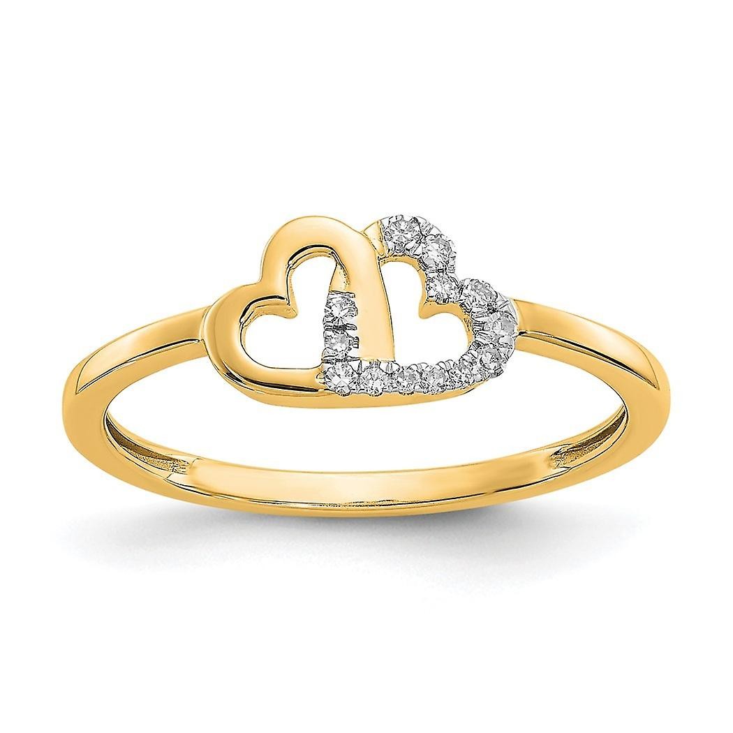 Bague en or 10 carats avec double cœur et diamants de 2 mm, taille 7,00, bijoux cadeaux pour femmes